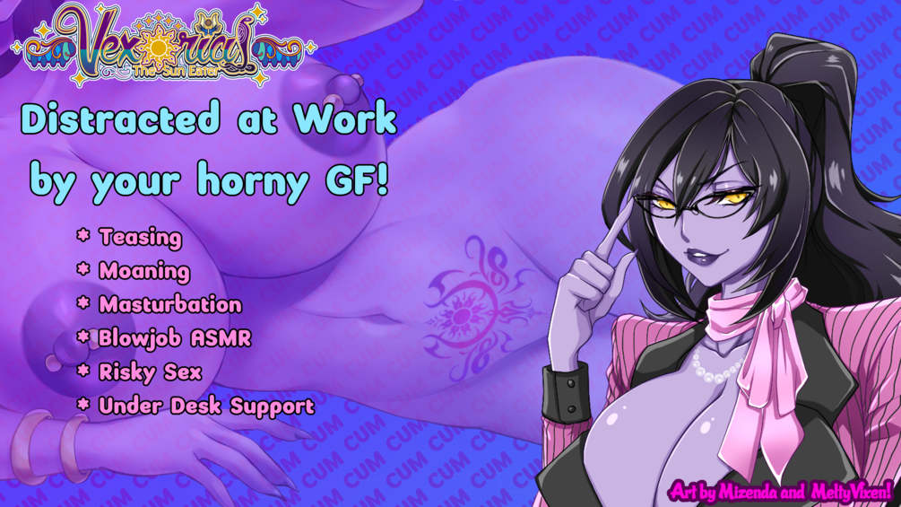 This Naughty ASMR audio includes 20+ minutes of teasing, masturbation, blowjob ASMR, risky sexual play and under desk support scenarios! An even longer 2 hour version contains the same content with periodic moans and playful giggles for Vex to tease you with while you're focusing!